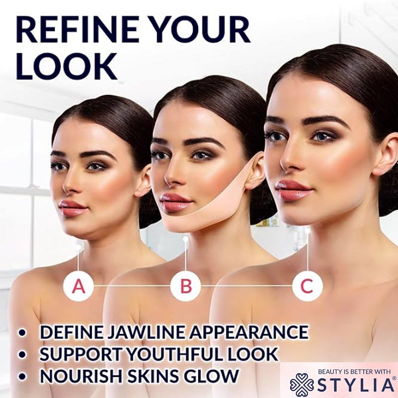 Stylia V Line Lifting Collagen Face Mask – Double Chin Strap for Women – Jawline Shaper Face Lift Tape – Neck Lift Collagen Mask – Chin Strap for Sleeping – Hyaluronic Acid, Aloe Vera, Cica 7PC
